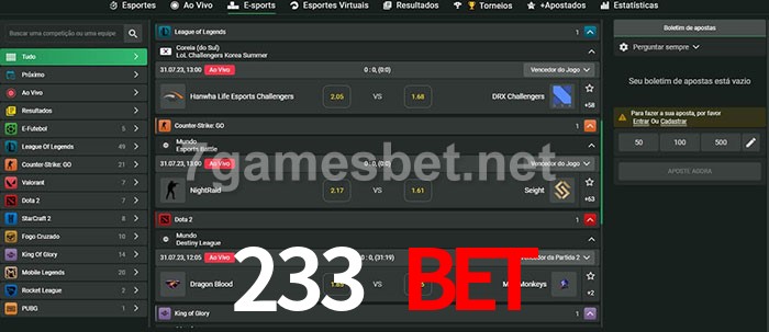 A aposta 233 Bet oferece aos jogadores a experiência mais conveniente de apostas em eSports!